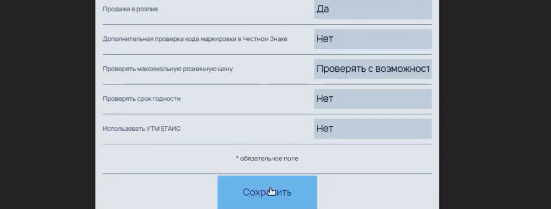 Напротив настроек «Табачные изделия», «Альтернативная табачная продукция» и «Разливное пиво» обязательно поставьте «да».